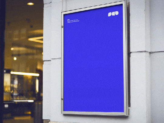 Symon card displayed in a lobby seating area